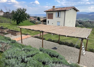 During the colder months, he turns to small-scale building projects in both wood and masonry: from fences, pergolas, and patios to small stone walls, bathroom renovations, and indoor repairs like plastering and painting.